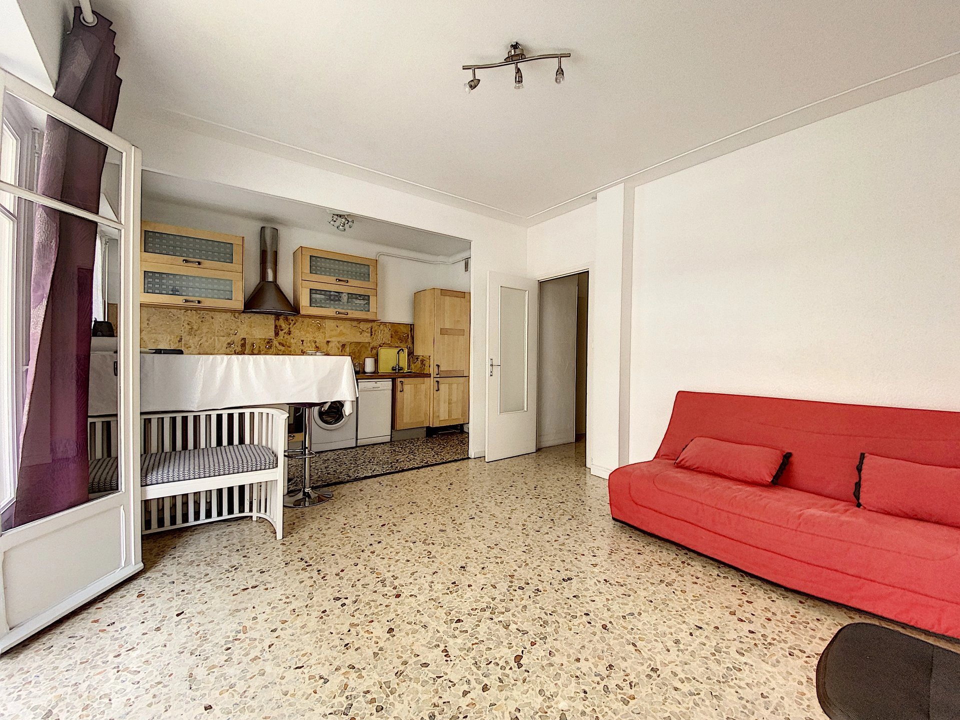 RIQUIER / Location Meublée: A 2 pas de la gare et de Carrefour TNL, dans une résidence de très bon standing située dans une traverse au calme, spacieux studio meublé de plus de 32m2 composé d'une grande pièce principale avec une belle cuisine entièrement équipée, une entrée avec un grand dressing, une salle de bains avec WC et une cave en sous-sol.