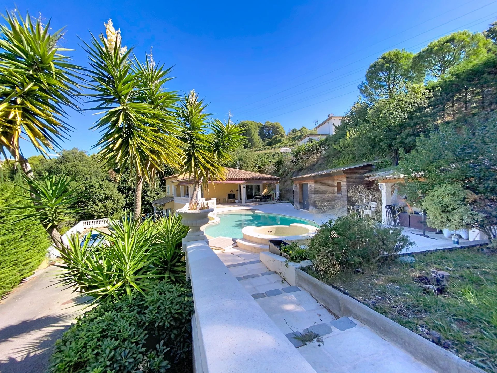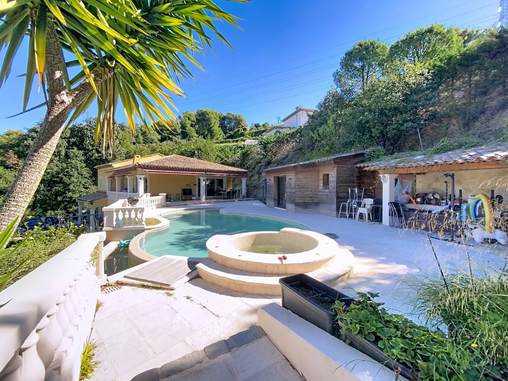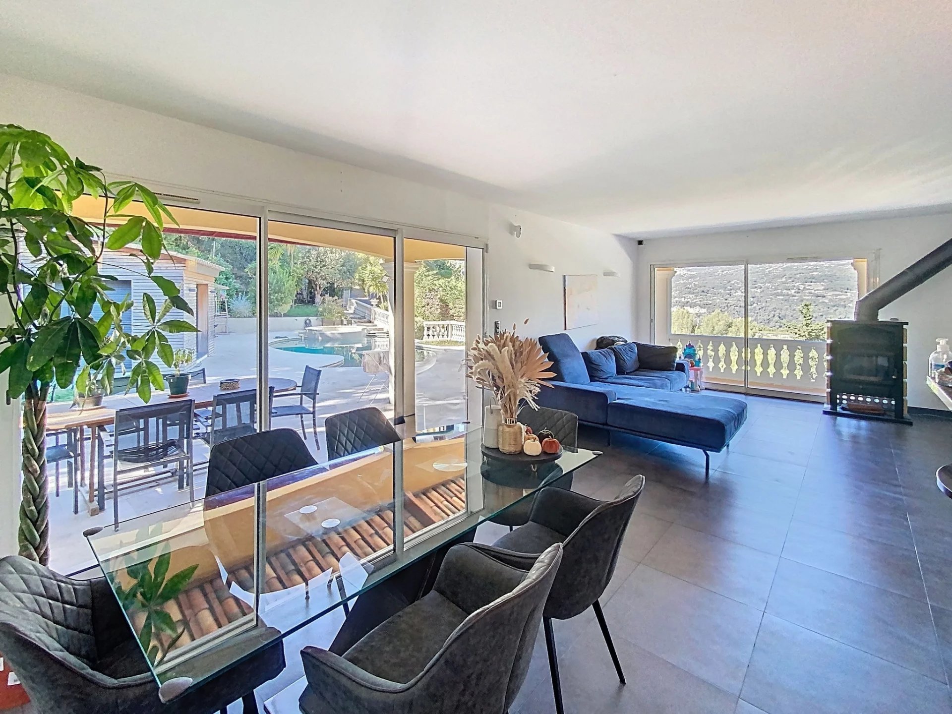 L'espace de vie principal s'articule autour d'un séjour chaleureux avec poêle à bois, ouvert sur une vaste terrasse ombragée, idéale pour profiter des belles journées niçoises.