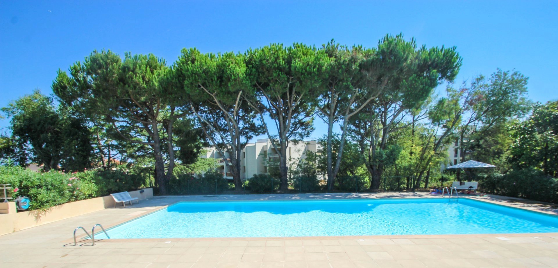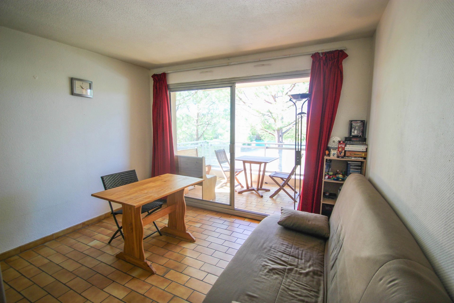 Breguières : Dans résidence de standing avec gardien, piscine et tennis, studio meublé de 17m2 habitables en étage avec terrasse de 7m2 composé d'une entrée avec placard, une pièce à vivre avec cuisine équipée, une salle de bains avec WC.