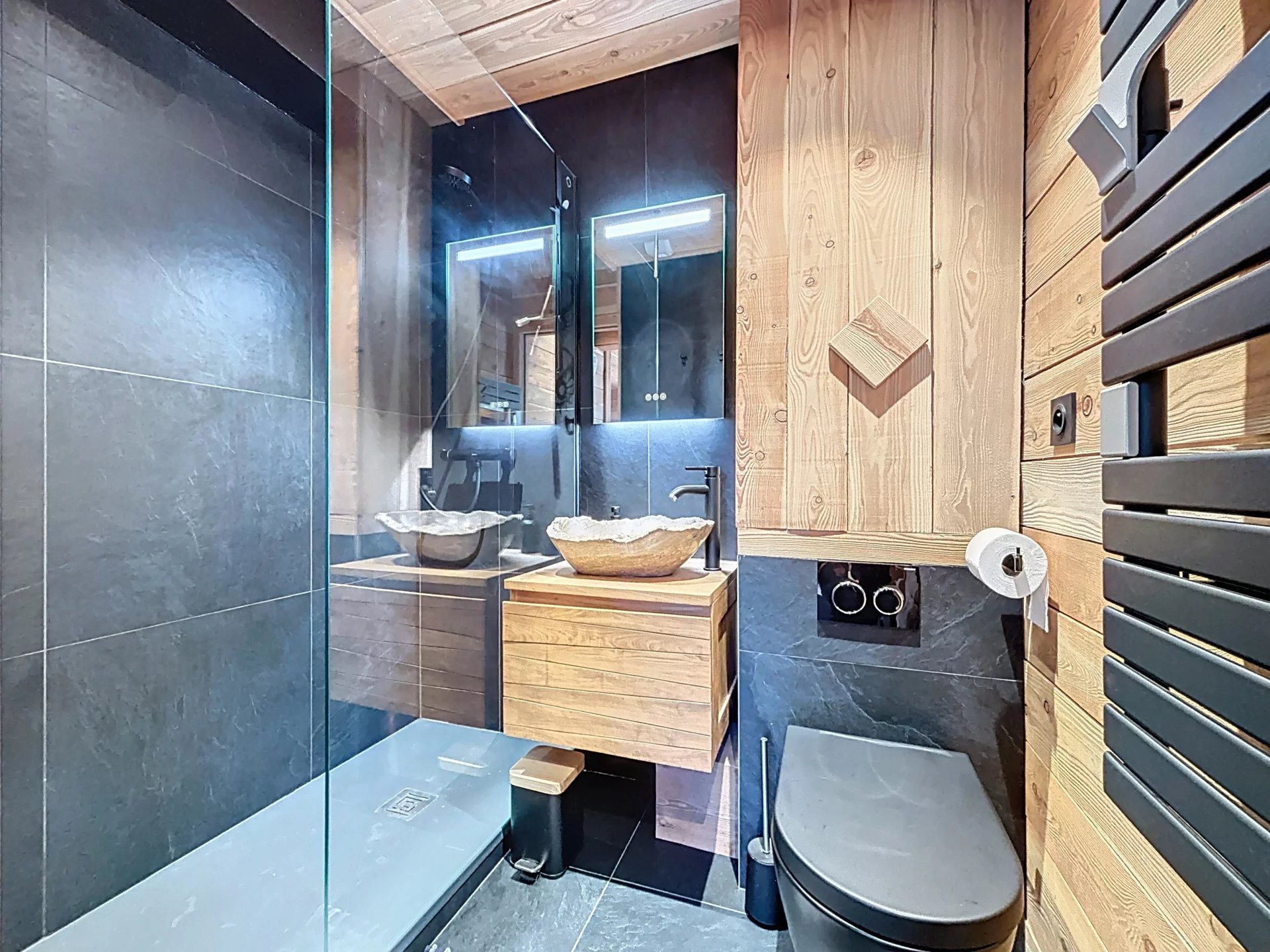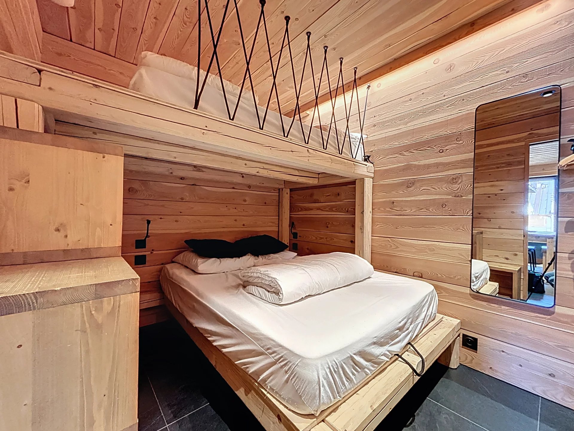 Entièrement rénové avec des matériaux nobles, notamment du bois, il offre une atmosphère chaleureuse mêlant style moderne et esprit montagnard.