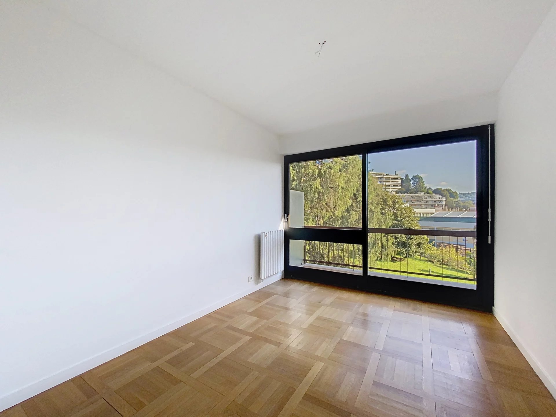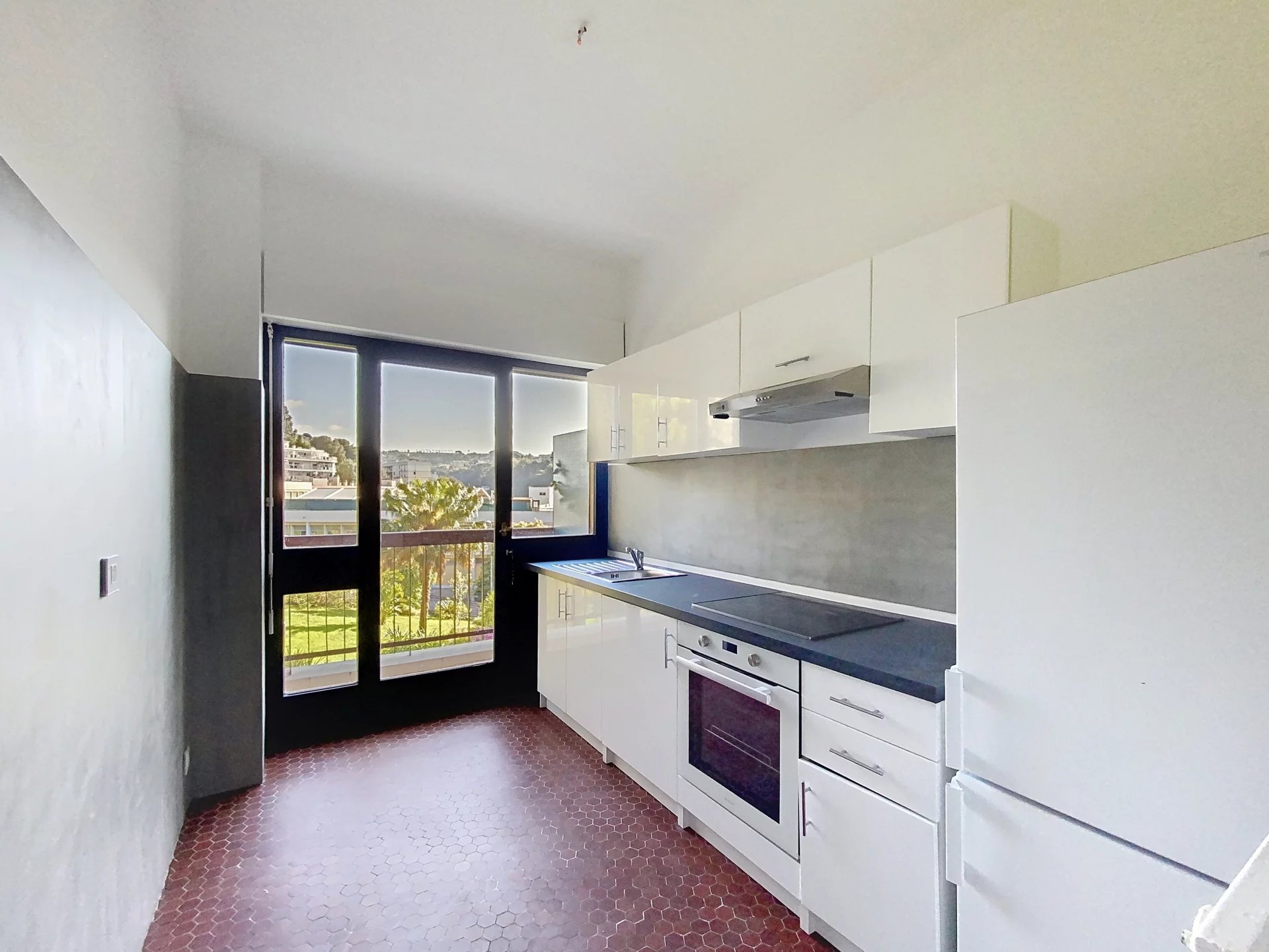Appartement de 79 m² traversant aux volumes exceptionnels, lumineux et ensoleillé, avec terrasse exposée ouest sur le séjour offrant un très joli panorama sur les collines, la ville et jusqu'à la mer. Une surface confortable actuellement agencée en 2 pièces, très facilement modulable en 3 pièces.
